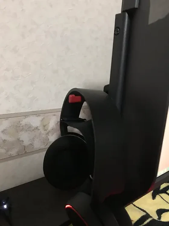 そして個人的にすごく感動したところがあるんですが、それはこのディスプレイについているヘッドホンハンガーです。