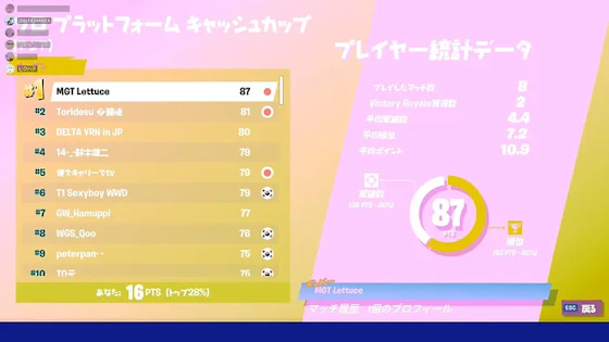 途中メンバーを変えたせいでFNCSに出れなかった苦い思い出があります。
